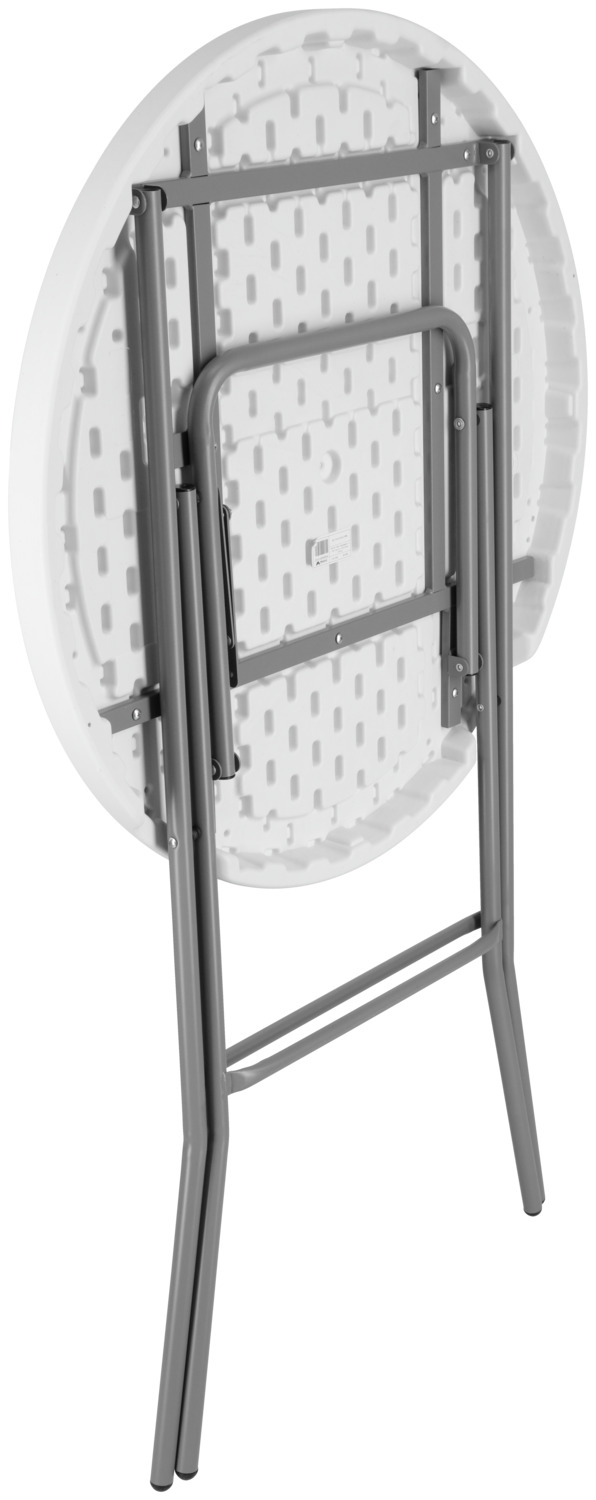 Powder-coated steel frame and table top made of high-density polyethylene. The Eventaro bar table is the practical solution for gastronomy, catering and events. Thanks to its sturdy construction, weather and UV resistance, it is ideal for banquets, standing receptions or outdoor catering. The foldable construction enables quick assembly and disassembly as well as space-saving storage, making it an efficient support for professional catering. The Eventaro bar table is specially designed for professional use in the catering sector. The table top made of high-density polyethylene is waterproof and UV-protected, meaning that the table can be used flexibly both indoors and outdoors. The powder-coated steel frame ensures high stability, while the widely spaced legs guarantee stability on all surfaces. The foldable design facilitates transport and storage, which is particularly practical for catering events and changing venues. Rubber feet protect the floor and reduce noise – an advantage for restaurants, hotels and event locations. Thanks to the neutral colour scheme of grey frame and white table top, the table blends easily into different room and garden concepts. The materials are easy to clean, low-maintenance and durable, making the Eventaro bar table a lasting aid to everyday work in catering and event services. * Frame made of powder-coated steel, table top made of high-density polyethylene * Folding high table for gastronomy, catering, banquets and events * Stable thanks to widely spaced legs, rubber feet protect floors * Easy to clean, low-maintenance and durable for professional use * Quick to set up and take down, space-saving storage