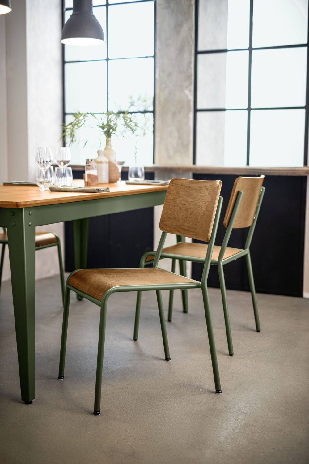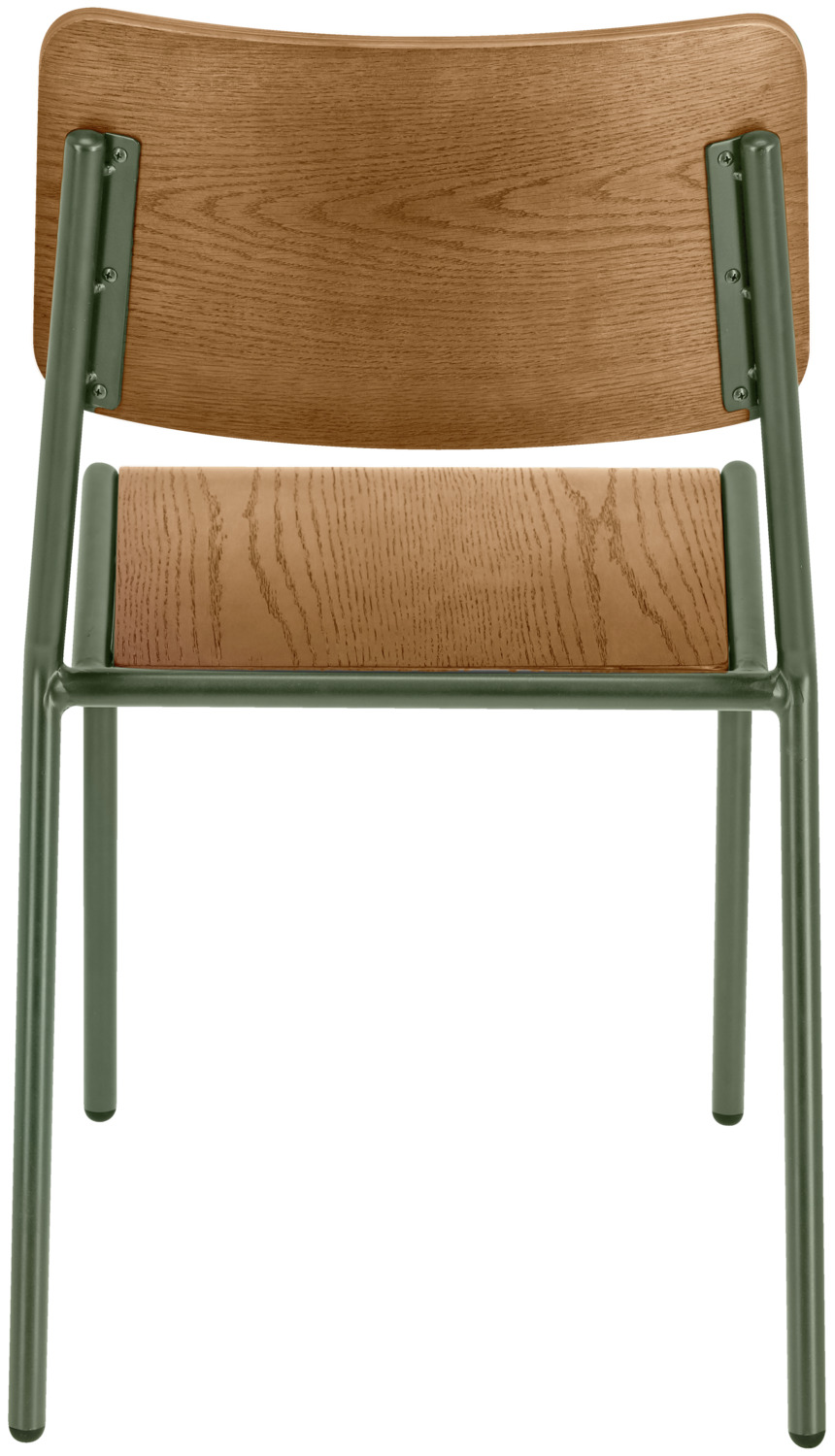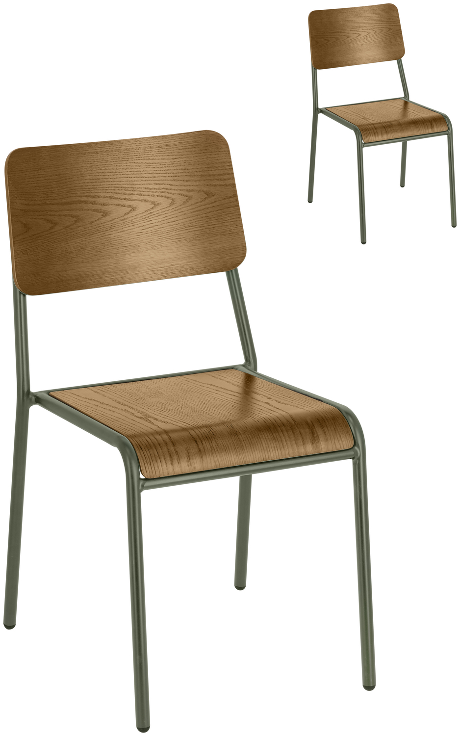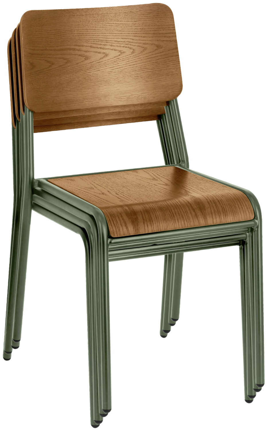 Trendy wooden chair with powder-coated steel frame and ash plywood seat and back. Stackable up to six chairs. Only suitable for indoor use. Delivery is assembled.