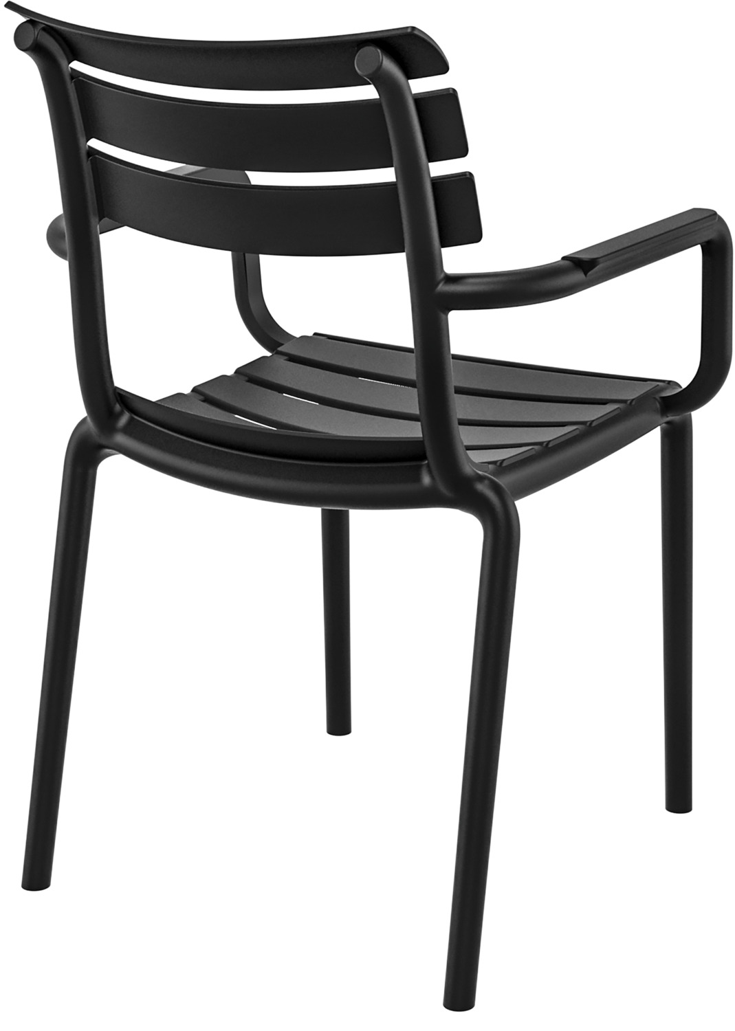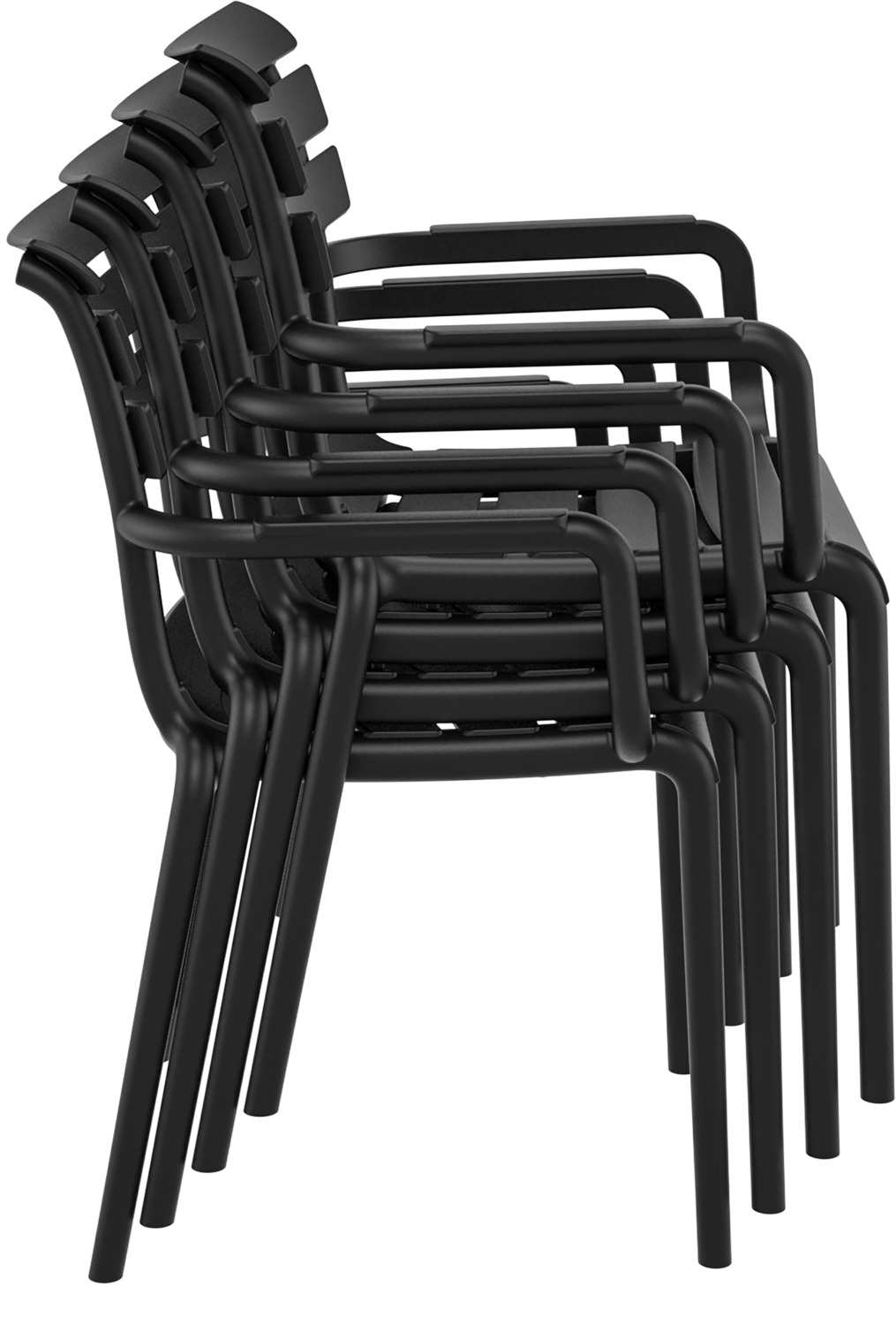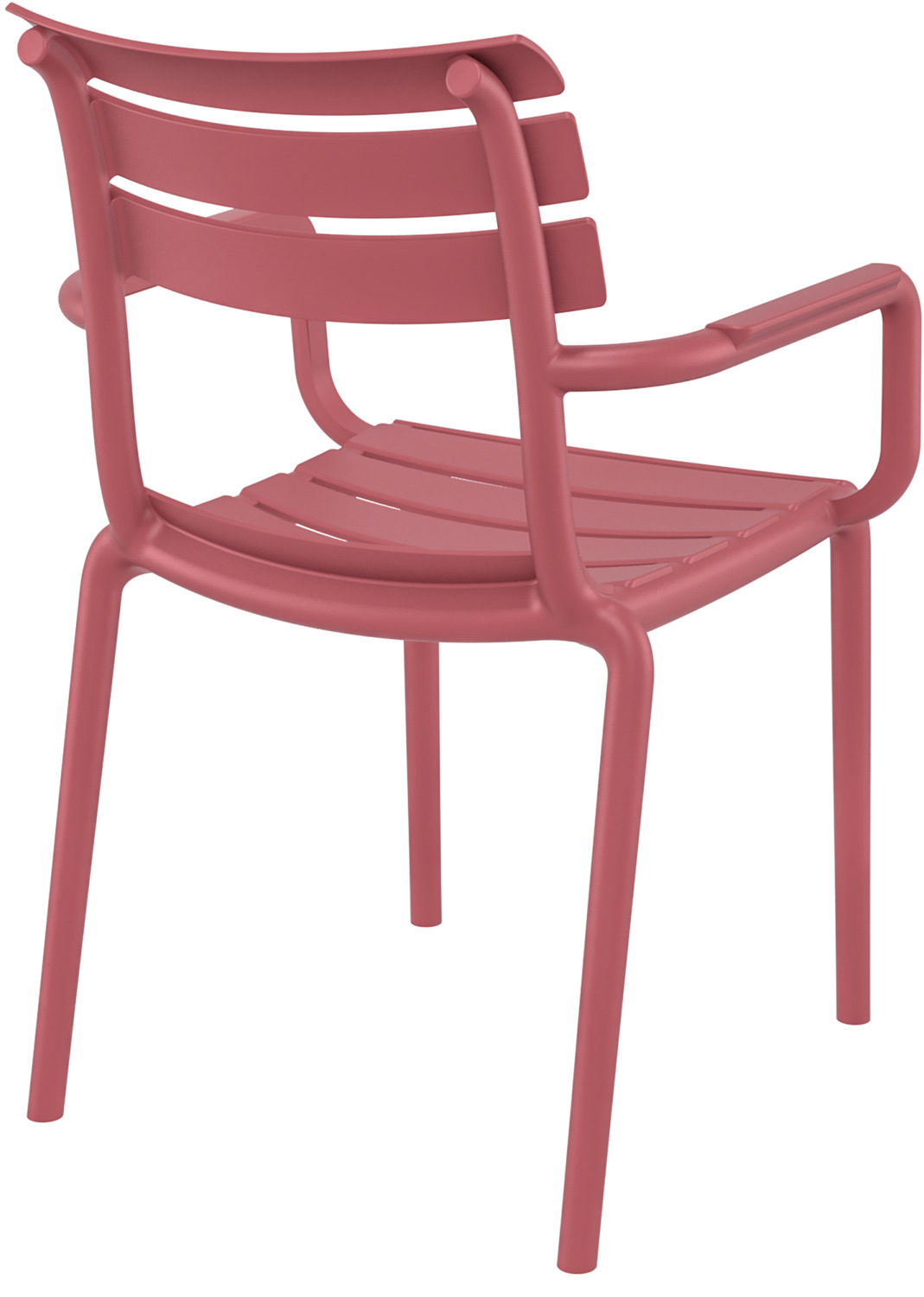 Modern outdoor chair made of fiberglass-reinforced, recyclable polypropylene. Extremely lightweight and robust. Up to five chairs can be stacked. Order the matching chair without armrests at the same time. Suitable for outdoor use. Delivered assembled.