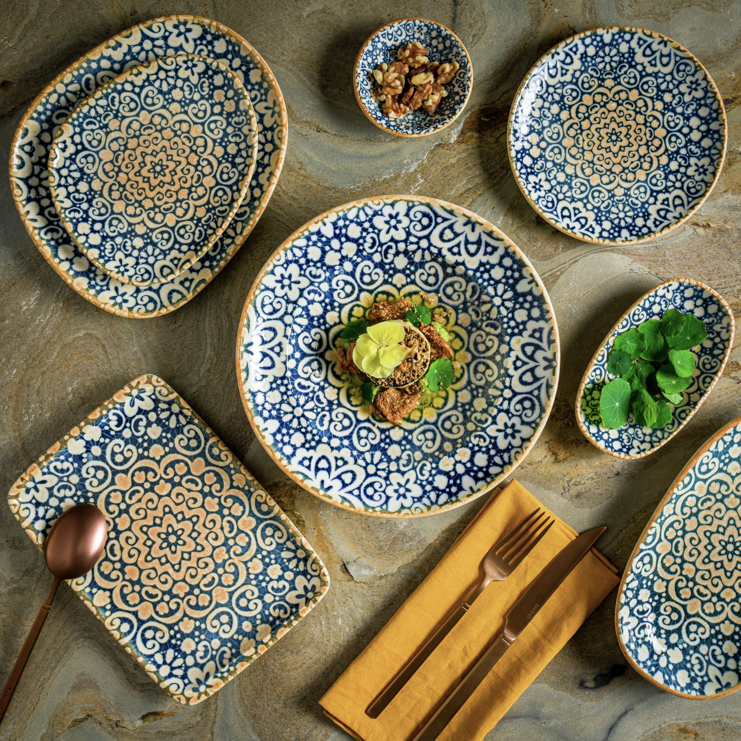 Colored plate in a trendy vintage look with oriental pattern. Suitable for dishwasher and microwaveable.