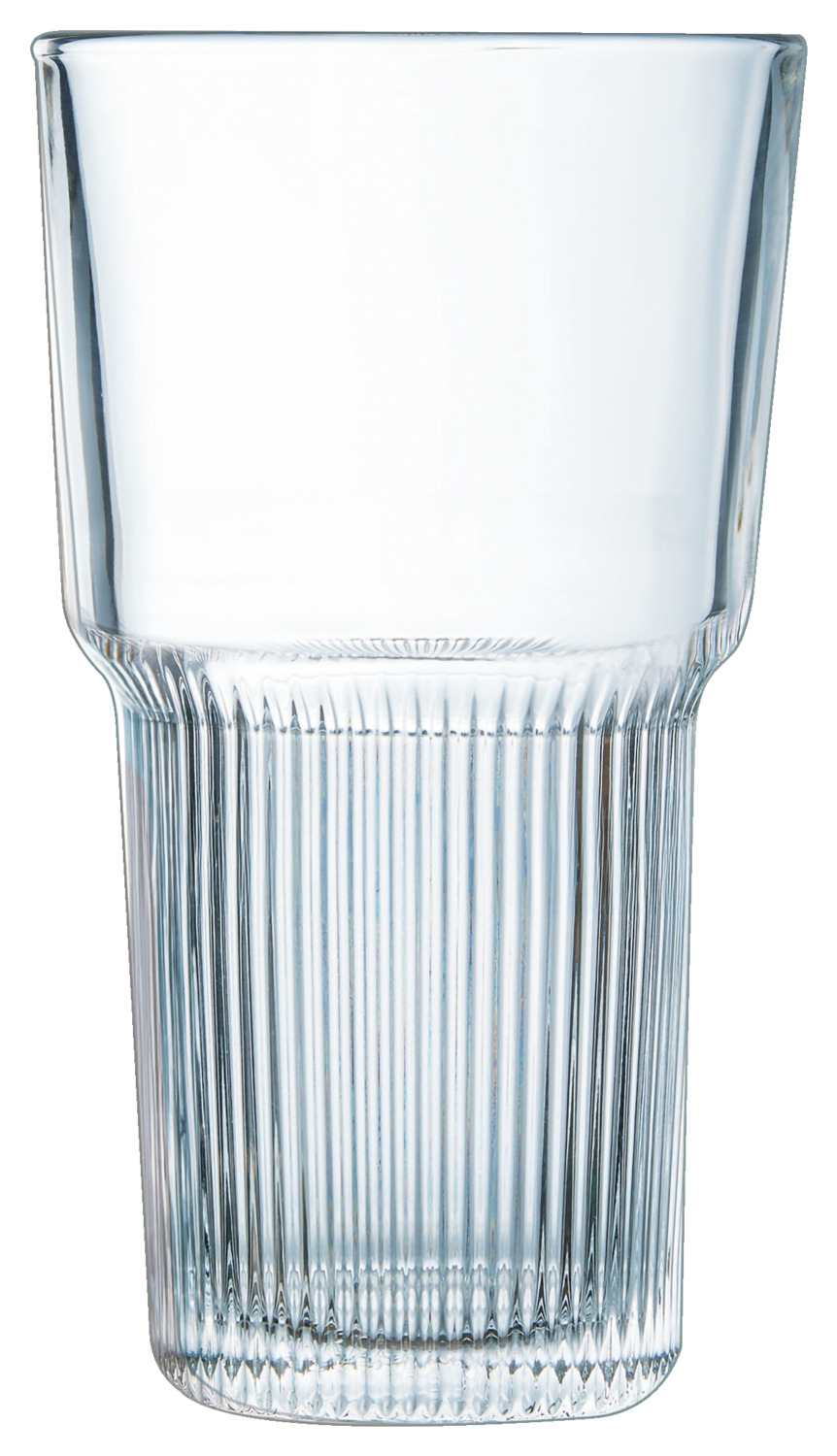 Robust long drink glass made of tempered glass. Stackable, also in combination with the Granity series and dishwasher-safe.