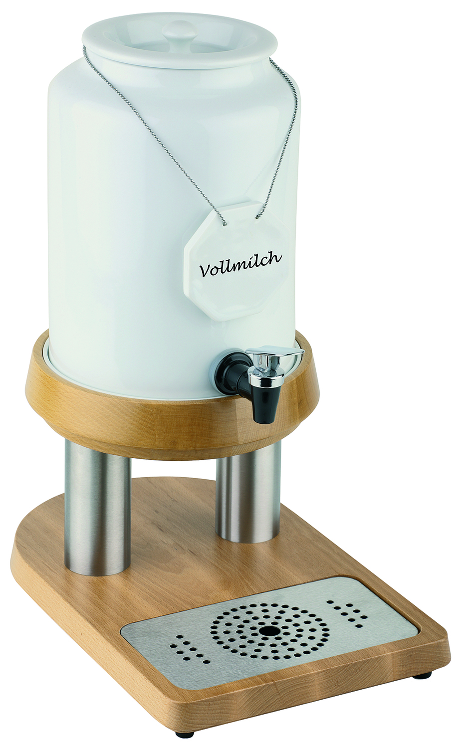 This milk jug with ice pack will impress at any breakfast buffet. Frame material: wood, waterproof sealed.