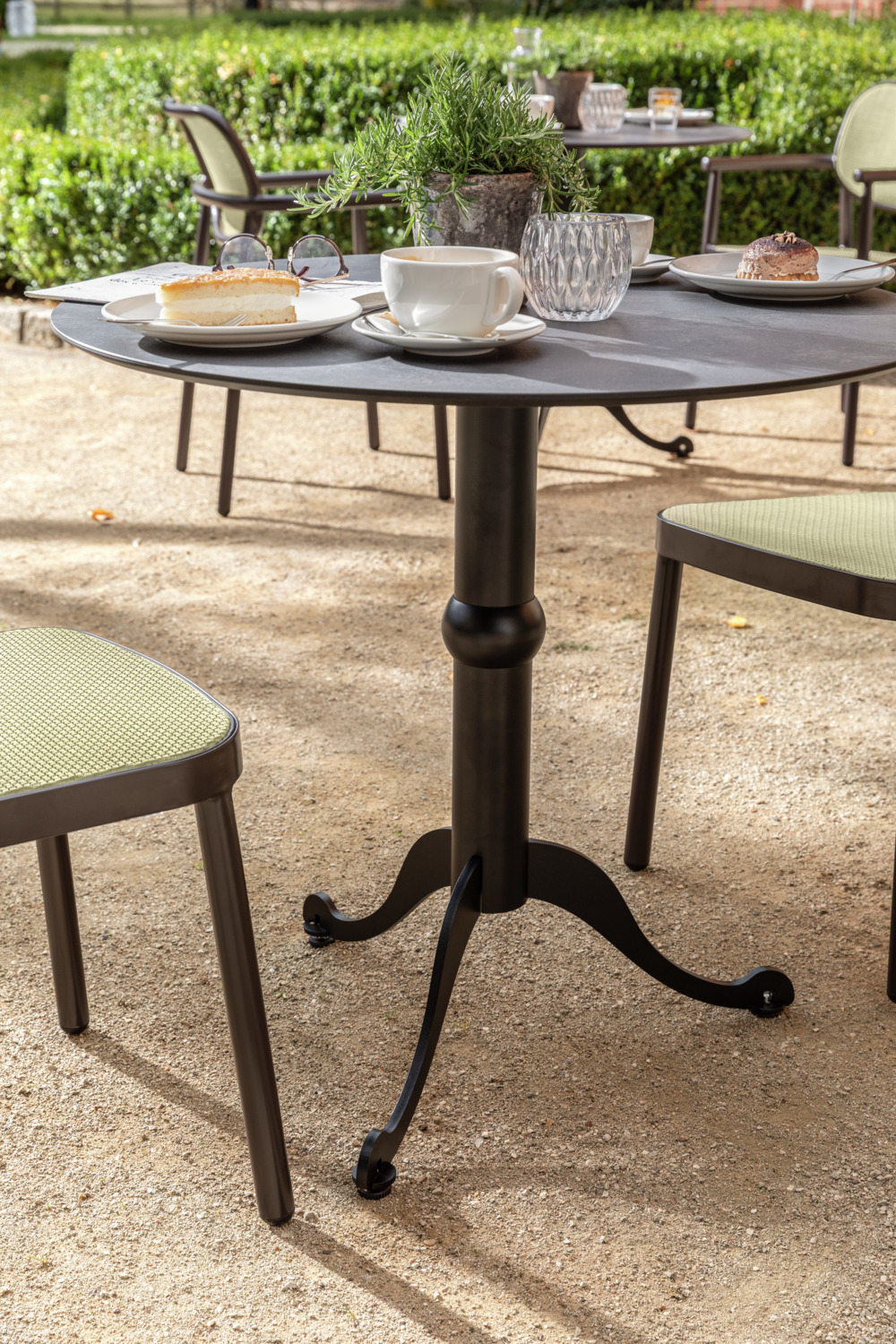 Table column in vintage design, for mounting table tops. 3-legged table frame for table tops with max. Ø 80 cm or 70×70 cm. Suitable for indoor and outdoor use. Includes adjusting screws to compensate for minor unevenness in the floor. Supplied disassembled. Simple assembly.