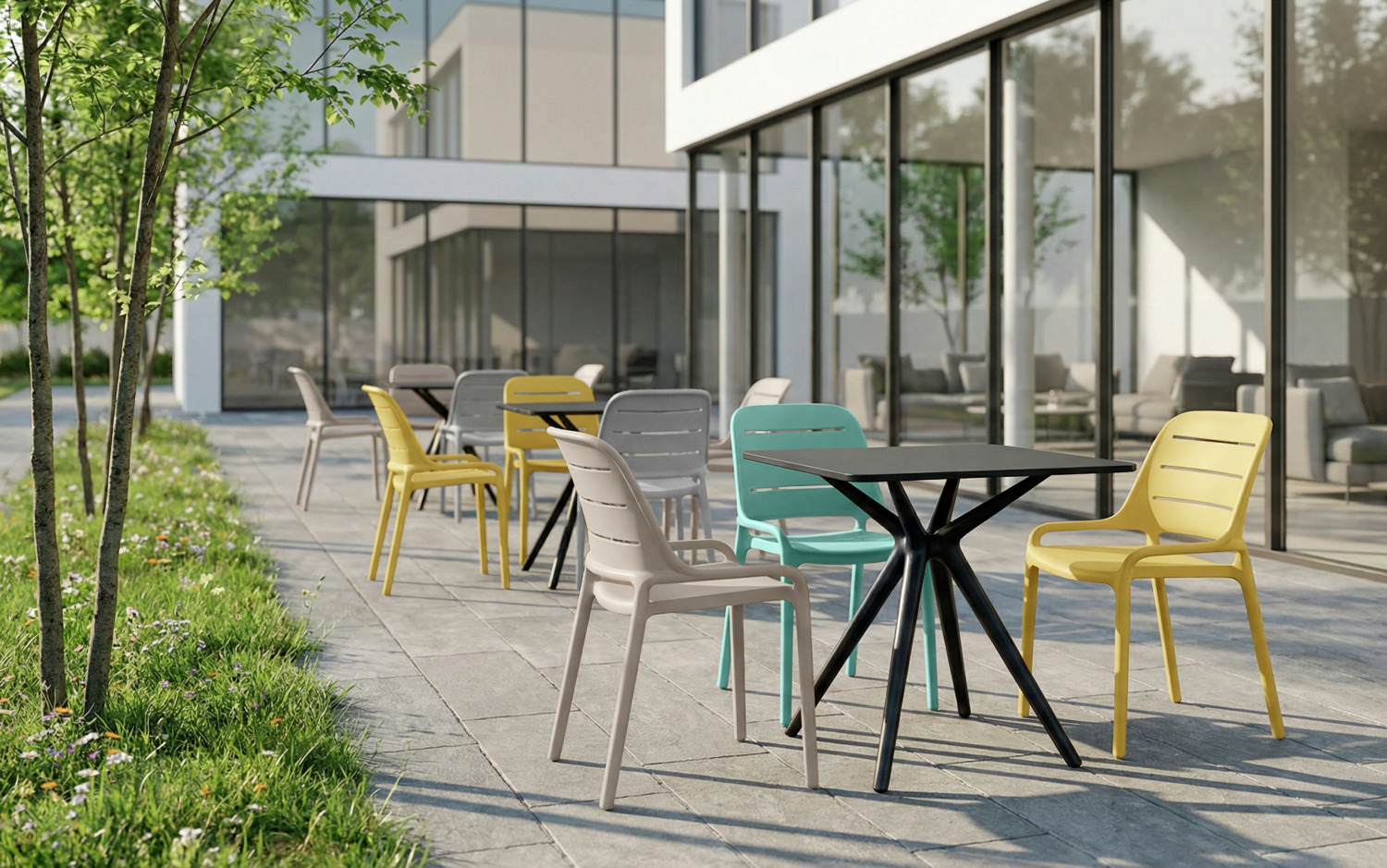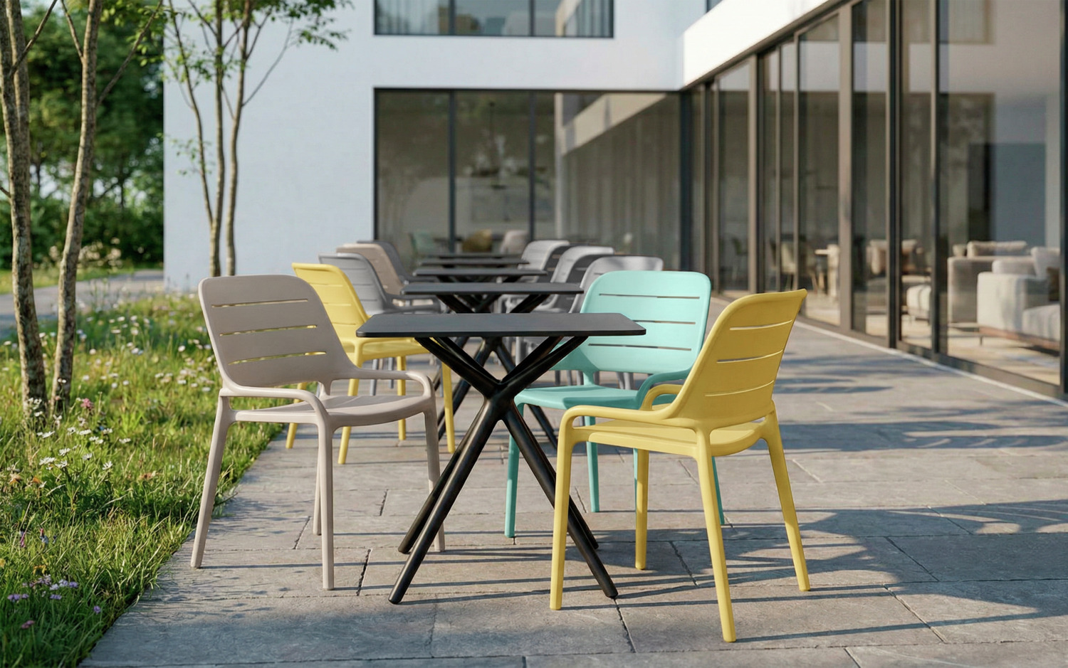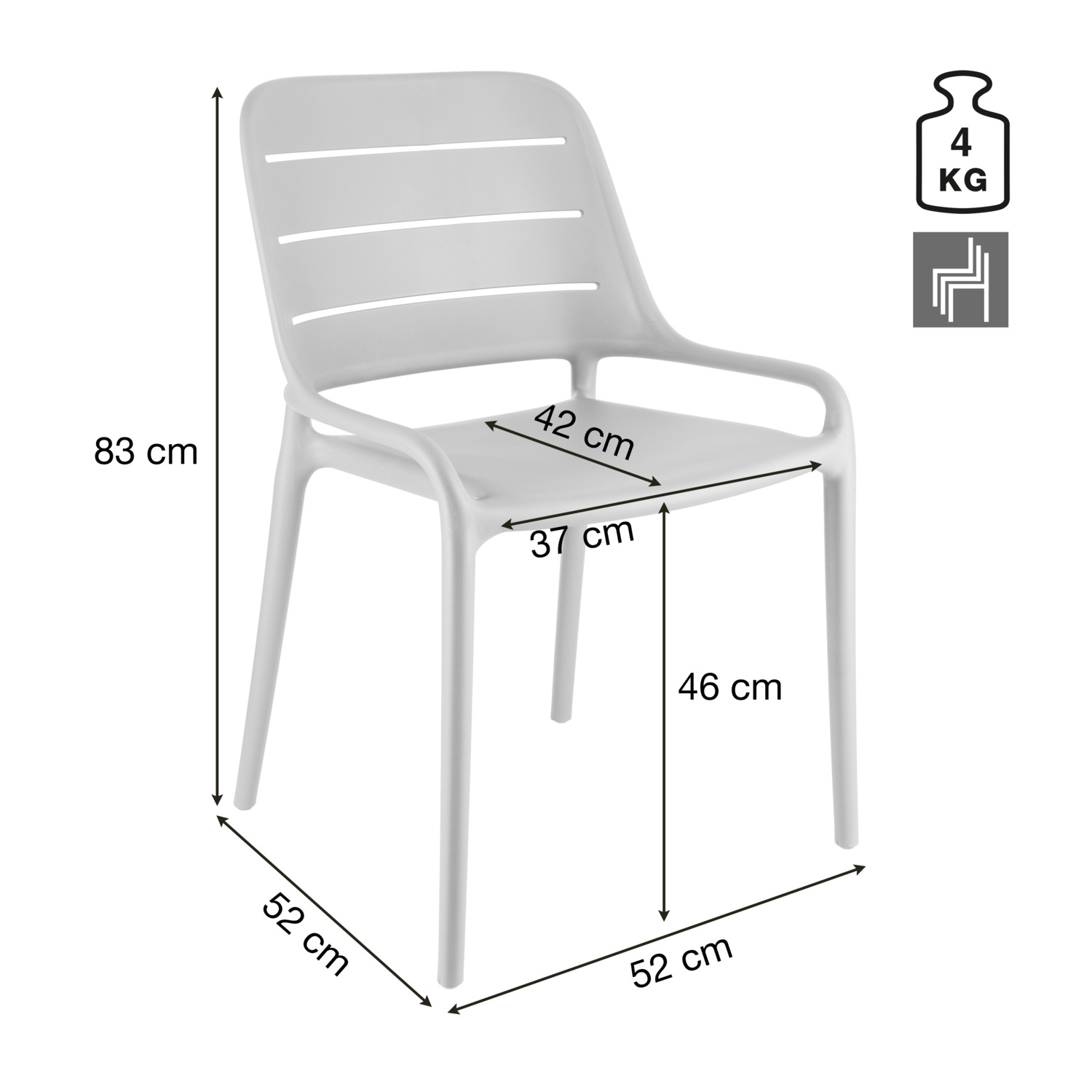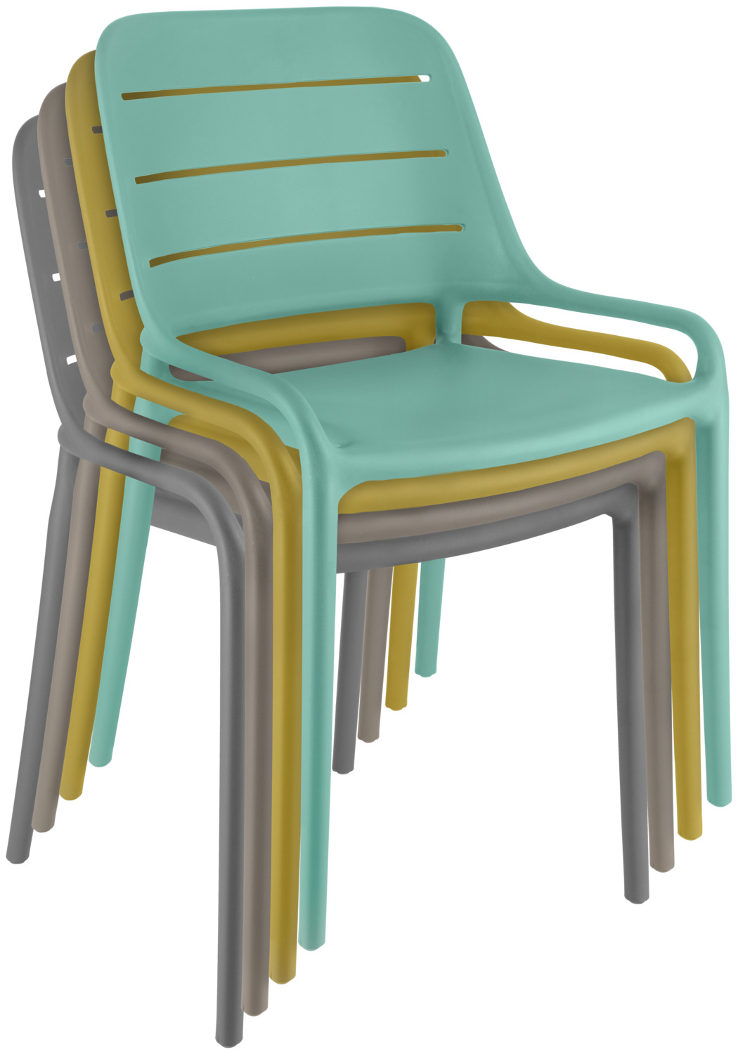 The high-quality Rylon plastic chair made of fibre-reinforced polypropylene impresses with its modern look, high stability and excellent seating comfort. The slotted backrest ensures pleasant ventilation and additional comfort – ideal for restaurants, cafés, bars and terraces. Thanks to its robust material, the Rylon is easy to clean, weatherproof and UV-resistant for up to 3,000 hours of sunshine. With a load capacity of 150 kg, it remains reliable and dimensionally stable even in daily use. Its versatile design sets stylish accents and makes it a real eye-catcher. It can also be stacked up to 6 high, making it particularly practical for the professional catering sector. *Advantages for the customer thanks to glass fibre-reinforced polypropylene * Greater stability and load-bearing capacity: glass fibre makes the chair more resilient and durable – ideal for commercial use. * Longer service life: the material remains dimensionally stable and unbreakable even with frequent use. * Weather & UV resistance: Perfect for outdoor use as the material is less likely to fade or become brittle. * Low weight with high strength: Comfortable to handle without compromising on robustness. * Improved safety: The material is more stable overall and less susceptible to material fatigue. Integrated plastic glides reliably protect sensitive floors from scratches and make it easier to move.
