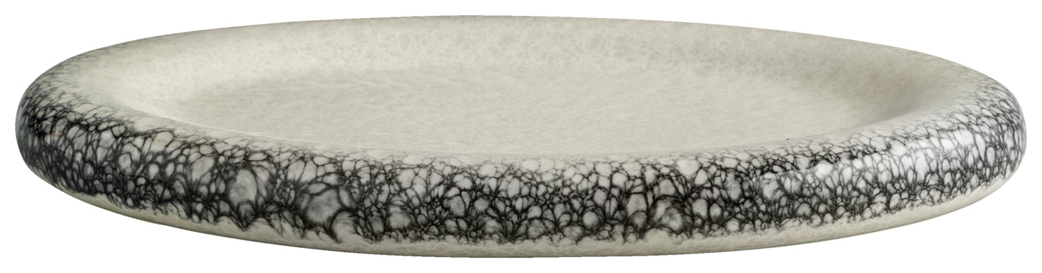 The oval platter from the Nagoya series is an impressive highlight for any sophisticated table presentation. With its elegant oval shape and artistic glazing technique, it combines Japanese-inspired aesthetics with modern sophistication. The cream-coloured surface is accentuated by a fine black rim, which is reminiscent of filigree mesh structures and gives the piece a special depth. Important note for professional use: The showpiece is open at the bottom, which means that residue can accumulate. Separate drying after cleaning is therefore essential to ensure the longevity and hygiene of the product. Ideal as a decorative element or as stylish serveware for special occasions – the Nagoya oval platter impresses with its quality, design and functionality.