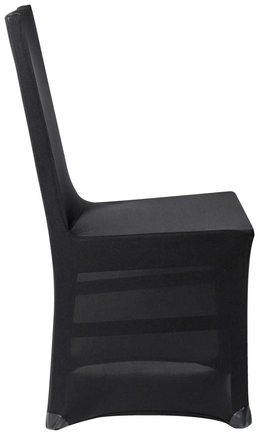 92% polyester, 8% elastane. Weight approx. 130 g/m². Classic stretch chair cover. Suitable for all standard banquet chairs with a square backrest. Suitable for indoor and protected outdoor use. Particularly easy-care and quick-drying. Personalization possible.