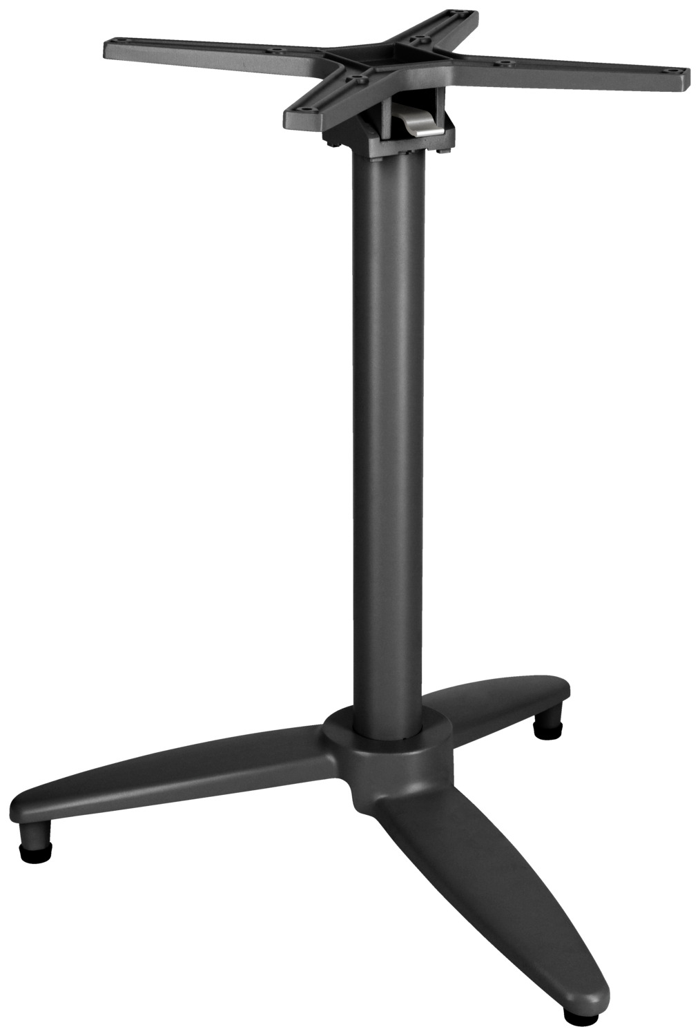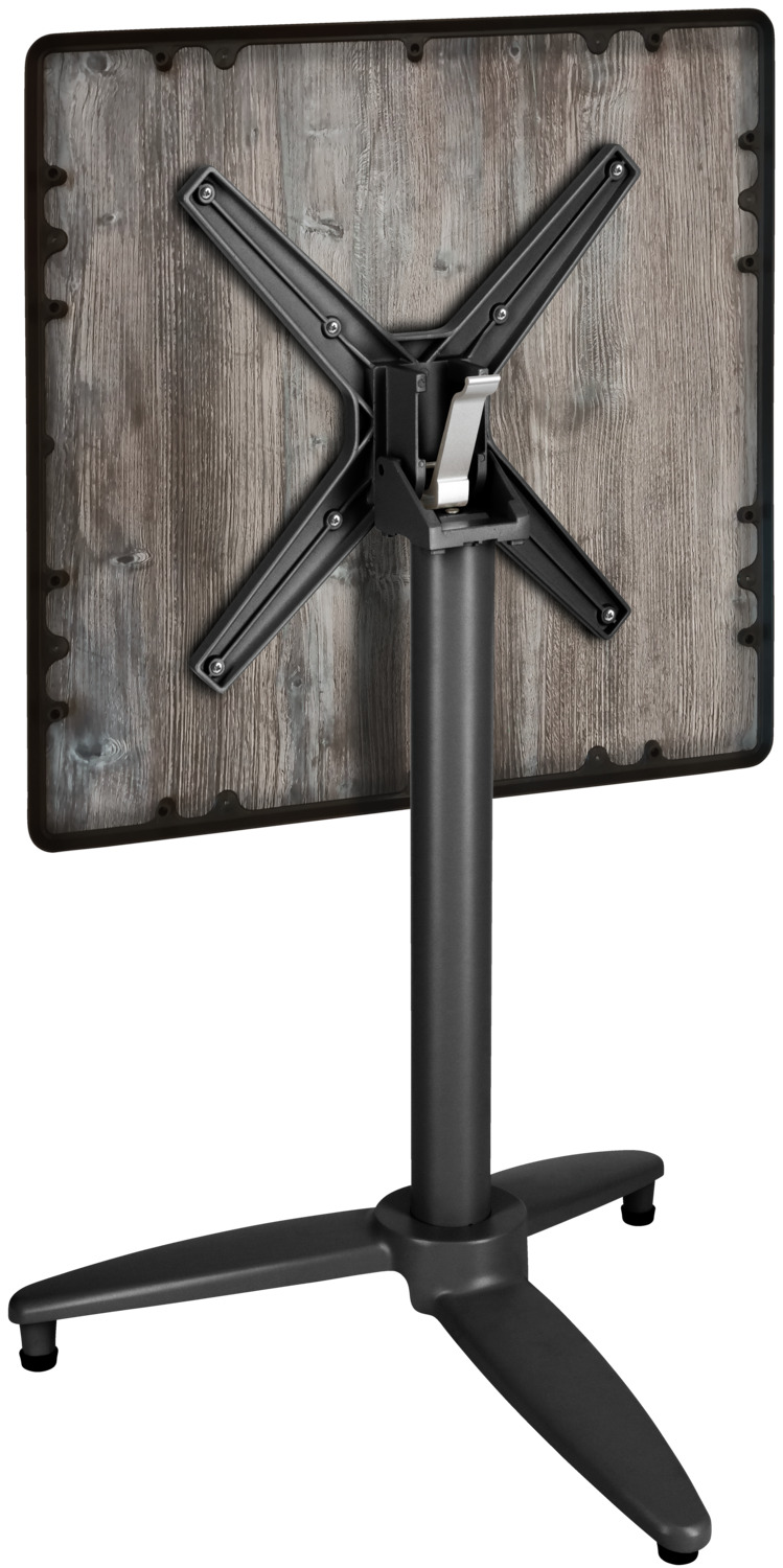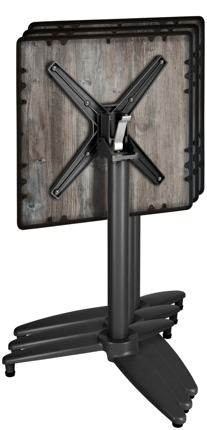 The Foldex folding table base made of powder-coated aluminium is the ideal solution for restaurants, cafés and hotels that require flexible and space-saving table frames. Whether in the dining room or on the terrace – the base allows the table tops to be folded up effortlessly and the frames to be stacked to the side. This allows you to save valuable storage space and create order in no time at all. Robust material and easy maintenance make the Foldex base a reliable partner in everyday catering. The Foldex folding table base has been specially developed for professional use in the catering trade. The aluminium table frame offers maximum flexibility: table tops can be easily folded up and the frames can be stacked inside each other to save space. This allows caterers to use their space efficiently and react quickly to changing requirements – from breakfast service to evening service, from indoor to outdoor catering. Integrated floor levelling screws guarantee stability even on uneven floors. The recommended table top size is a maximum of Ø 70 cm or 70×70 cm with a weight of up to 15 kg – making the Foldex column versatile for use with our table tops. The folding table frame is supplied disassembled, including fastening material. Please note: The required stability and stability against tipping is only guaranteed in combination with recommended table tops and with professional assembly. Advantages & features: * Powder-coated aluminium: robust, weather-resistant and easy to clean * Folding catering table frame: fold up table tops, stack frames to save space * For indoor & outdoor use: ideal as catering furniture in restaurants, cafés or hotels * Floor levelling screws: ensure stability even on uneven floors * The compact design is ideal for use in small cafés or bistros where space is limited * Simple assembly, fixing material included in the scope of delivery