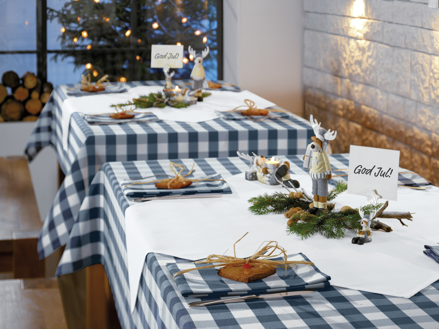 100% polyester. Weight approx. 210 g/m². Rustic tablecloth with check pattern. High lightfastness. Suitable for indoor and protected outdoor use. Particularly easy to clean, durable, quick drying and easy to iron. Personalization possible.