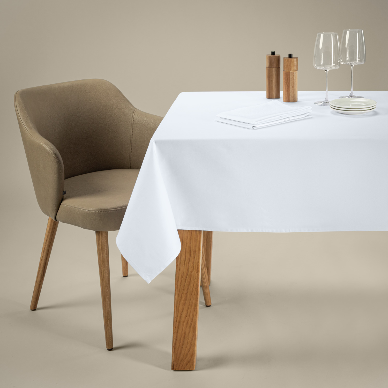 ##Cotton/polyester tablecloth Vivienne – Noble lustre with plain satin weave The Vivienne tablecloth combines the natural feel of cotton with the durability of polyester. The high-quality blended fabric creates an elegant look and is easy to care for. The fine satin weave gives the surface a subtle, elegant lustre that will set your table centre stage in style. The smooth, dense fabric is extremely dimensionally stable, durable and easy to clean – ideal for sophisticated catering, festive occasions and elegant events. The blended fabric guarantees a high level of durability and is impressive in both modern and classic settings. * 50 % cotton, 50 % polyester * Weight approx. 230 g/m² * Satin weave with an elegant lustre * Particularly smooth, dense fabric with a firm feel * Finished with 1 cm standard seam * Dimensionally stable, easy-care and hard-wearing