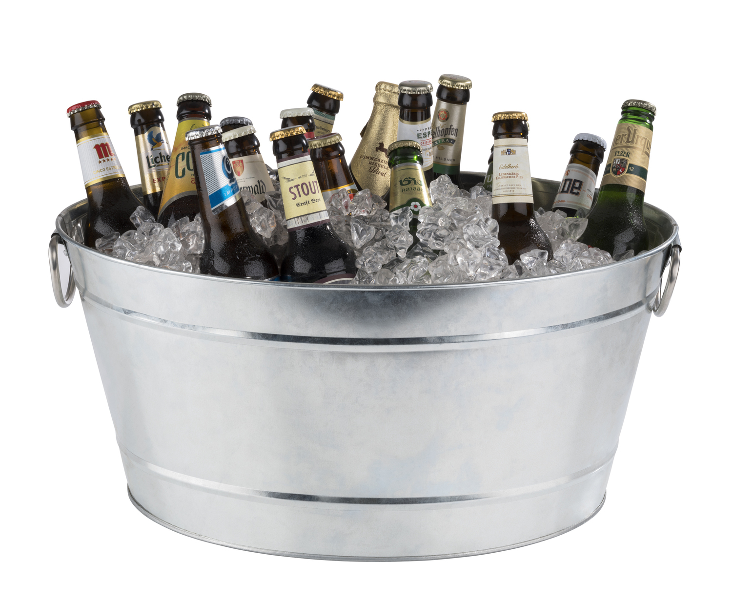 With plastic insert. The TIN drinks tub from APS consists of a galvanised metal tub and a plastic insert, which makes it easier to fill and empty the tub.