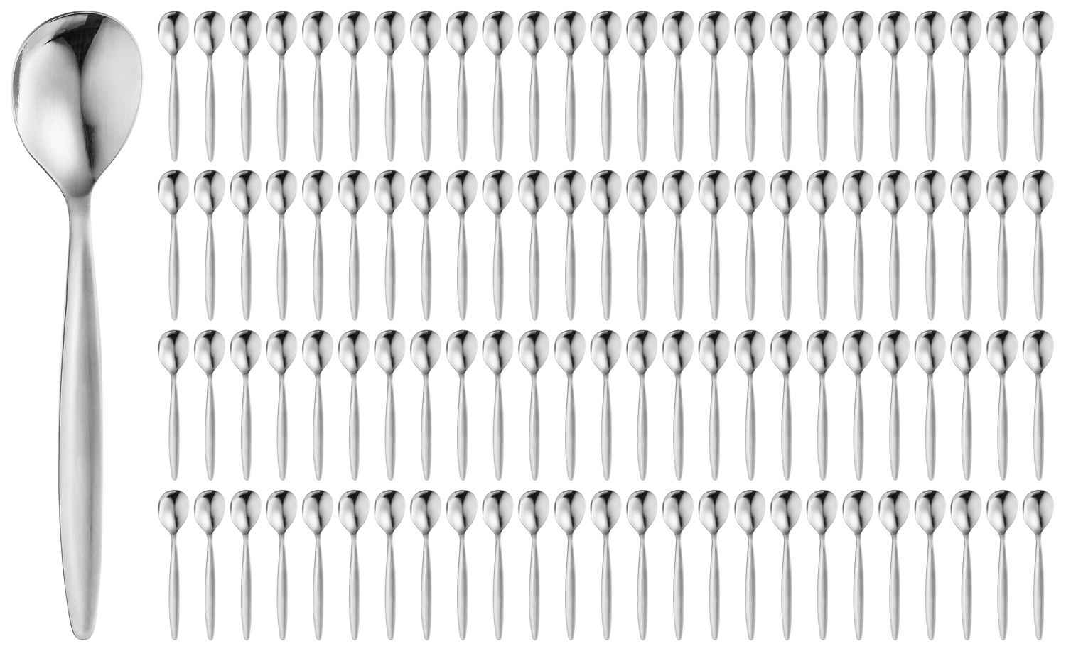 Chrome stainless steel 18/0, rustproof. Our value pack of 100 egg spoons is rustproof and durable. The simple, mirror polished egg spoon impresses with its robust, material thickness of 2.2 mm. Perfect for professional use, suitable for dishwasher. Optimize your catering business with these reliable egg servers!