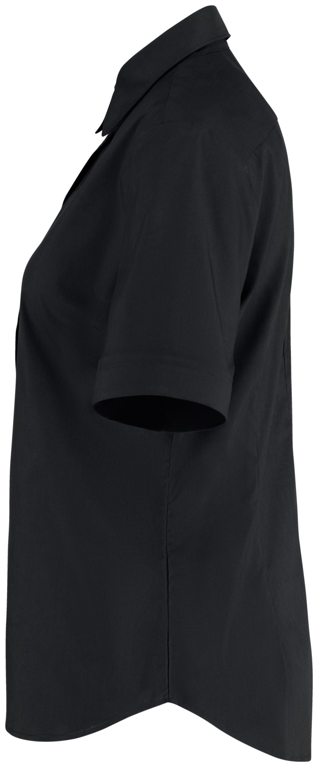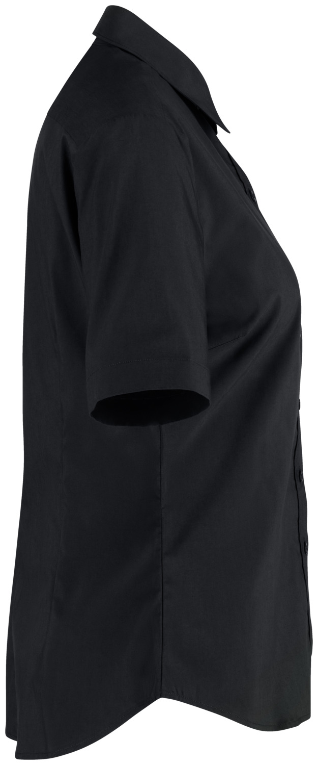 67 % cotton, 33 % polyester. 30°C wash. Classic, short-sleeved ladies’ blouse with visible button placket and shirt collar. With short bust darts and waist seams at the back for a perfect fit. Extra-long back and rounded hem. Particularly easy-care and easy-iron thanks to the polyester content. Regular fit. Back length: 68 cm for size 36.