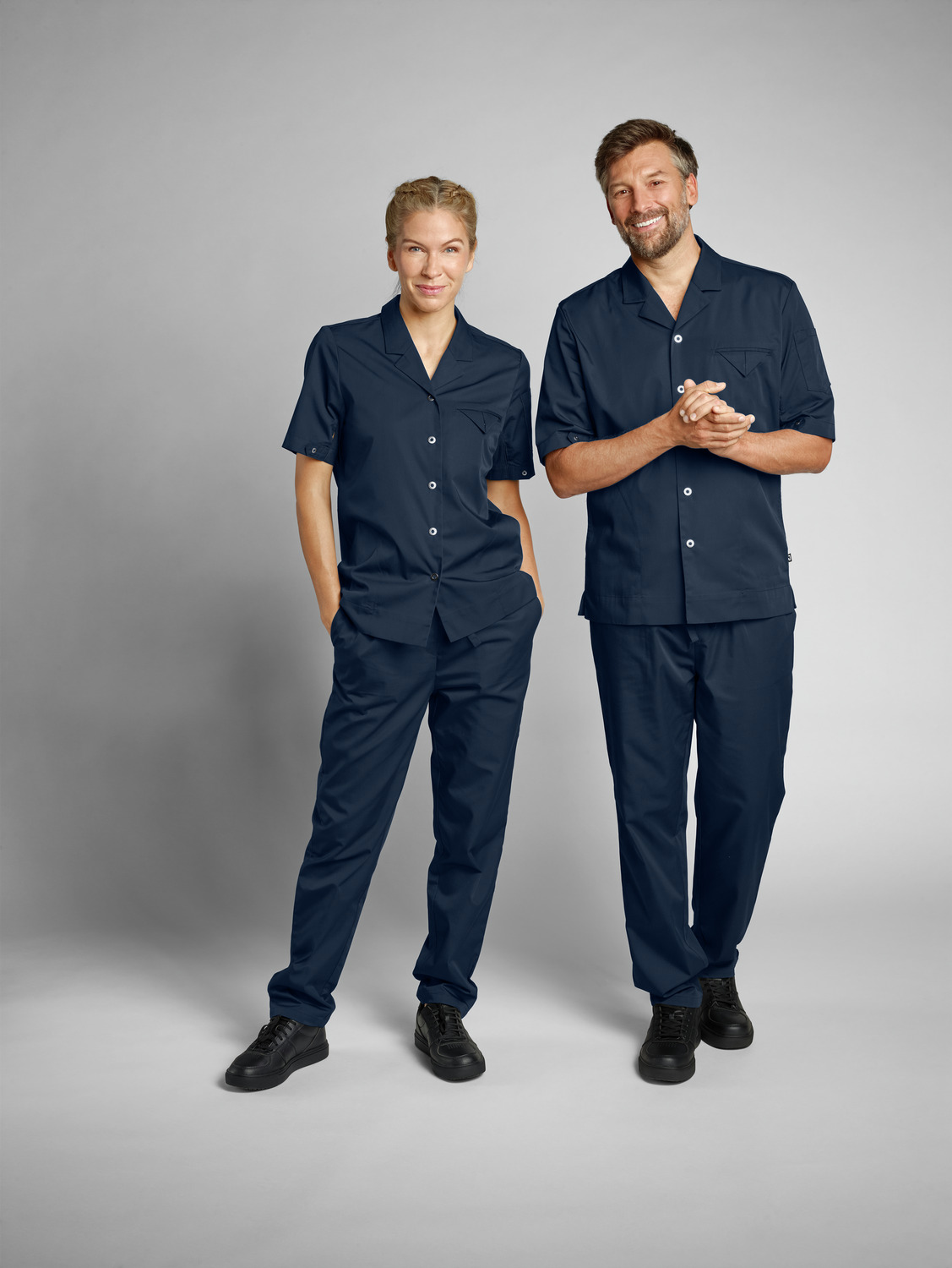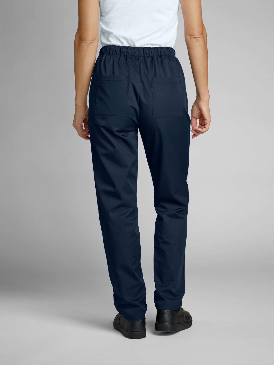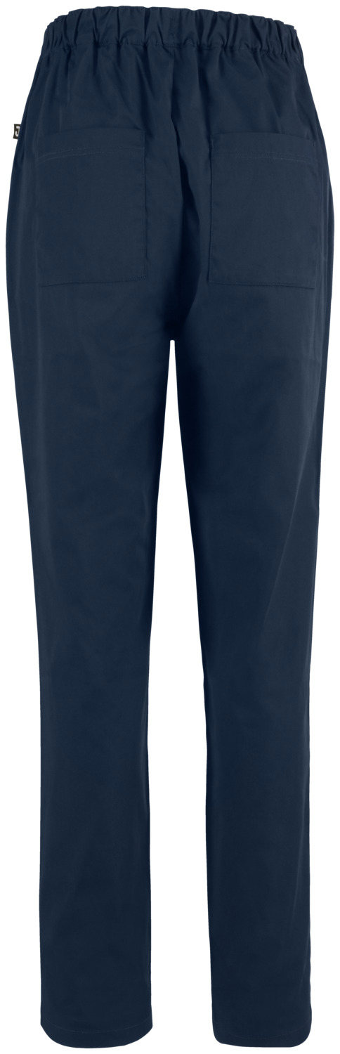 65% polyester, 35% cotton. 150 g/m². 60°C wash. Women’s chef trousers with fully elasticated waistband, made from an extra-light and breathable fabric. With side pockets, two patch back pockets and ties at the waistband to adjust and fix the waist size. Comfortable, loose fit with trouser legs that taper slightly towards the bottom. Inside leg length: 77 cm for size S.
